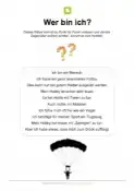 Kostenlose Rätsel mit je 10 Fragen zur Frage "Wer bin ich?" für Kinder zum Ausdrucken Die "Wer bin ich?"Rätsel jetzt gratis downloaden Viel Spaß!. Kostenlose Rätsel mit je 10 Fragen zur Frage "Wer bin ich?" für Kinder zum Ausdrucken Die "Wer bin ich?"Rätsel jetzt gratis downloaden Viel Spaß!. Das gilt es bei dem Spiel „Wer bin ich?“ herauszufindenDie ersten Rätselvorlagen wurden speziell für Kinder entwickelt Die unteren sind etwas schwerer und daher mehr für Erwachsene geeignet.