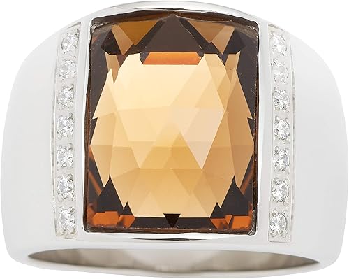 Damenring Mit Grossem Glasstein Und Zirkonia Steinchen Besetzt I Breiter Fingerring Aus Poliertem Edelstahl Silber Gr 53 Amazon De Schmuck