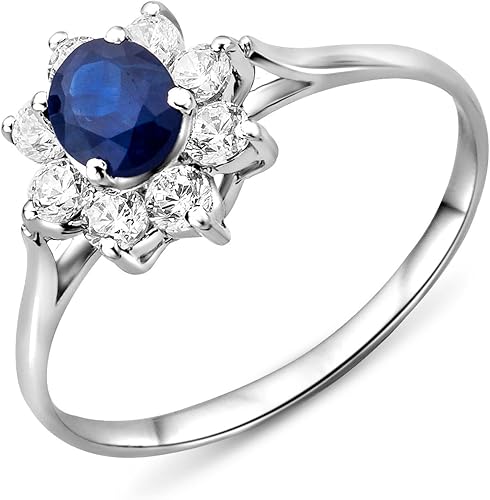 Miore Ring Damen Weissgold 9 Karat 375 Gold Saphir Mit Rundschliff Zirkonia Steinchen Amazon De Schmuck