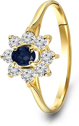 Miore Ring Damen Verlobungsring Gelbgold 14 Karat 585 Gold Mit Edelstein Blauer Saphir Und Rundschliff Zirkonia Steinchen Schmuck Amazon De Schmuck