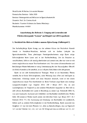 Ausarbeitung Des Referats 1 Umgang Mit Lernenden Mit Forderschwerpunkt Lernen Am Beispiel Von Lrs Legasthenie Studocu