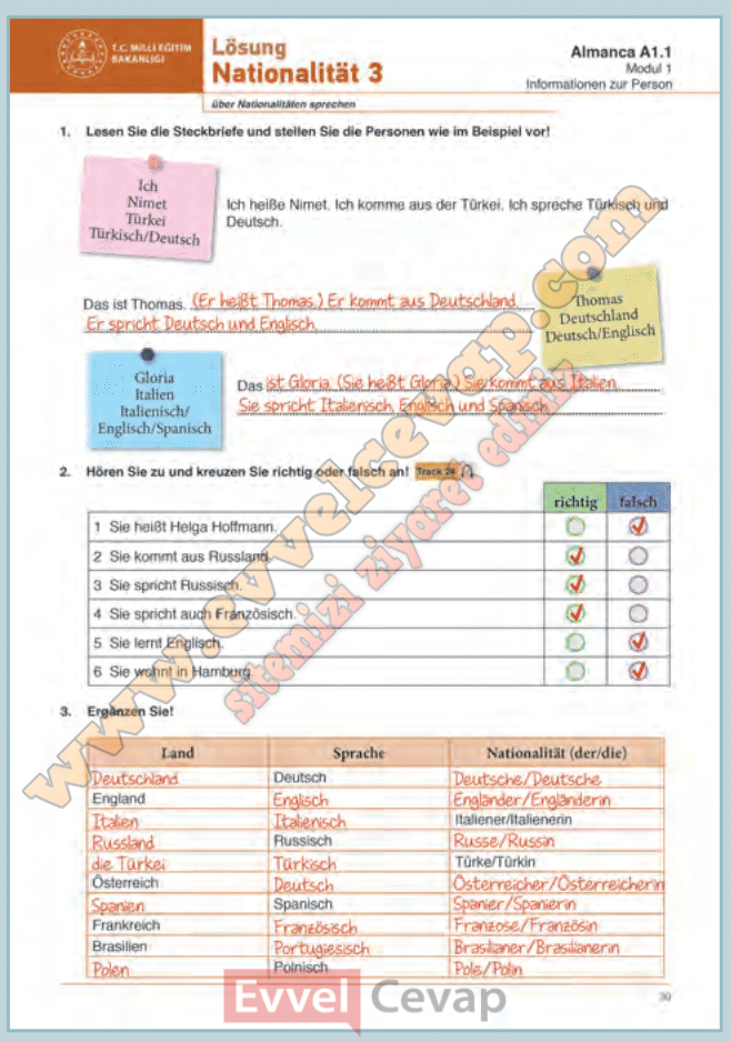 9 Sinif Almanca Beceri Temelli Etkinlik Kitabi Cevaplari Sayfa 30