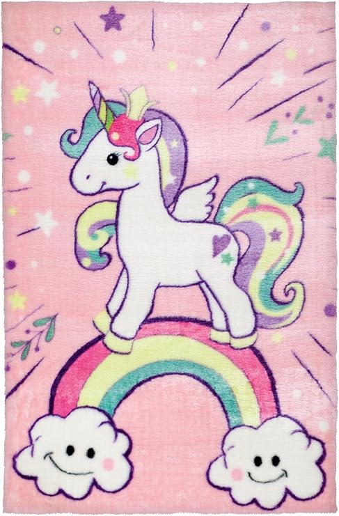 Luxor Living Kinderteppich Spielteppich Kinderzimmer Unicorn Einhorn Design Teppich In Rosa Dieser Maschinell Hergestel Einhorn Teppich Kinderteppiche Teppich