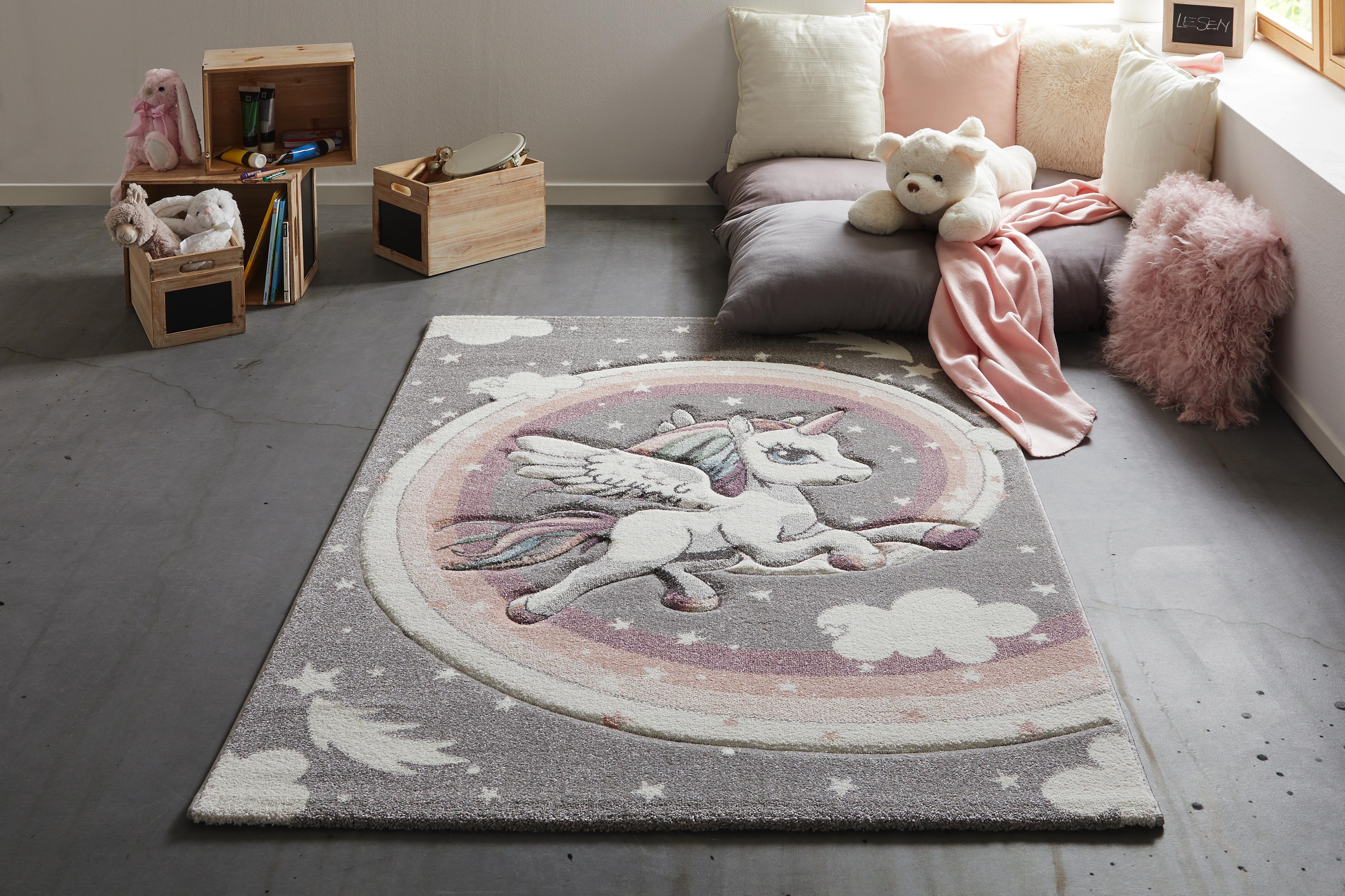 Einhorn Bavaria Home Style Collection Kinder Teppich Kinderteppich Unicorn Regenbogen Weicher Teppich