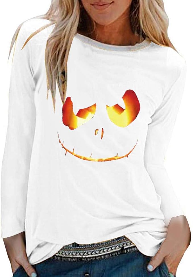 Calvinbi Helloween Tshirt Langarm Mit Feuer Kurbis Geist Damen Pulli Schwarz Pullover Schulterfrei Oberteil Lose Fit Casual Sexy Tops Bluse Off Shoulder Sweatshirt Langarmshirt Plus Size S 5xl Amazon De Bekleidung