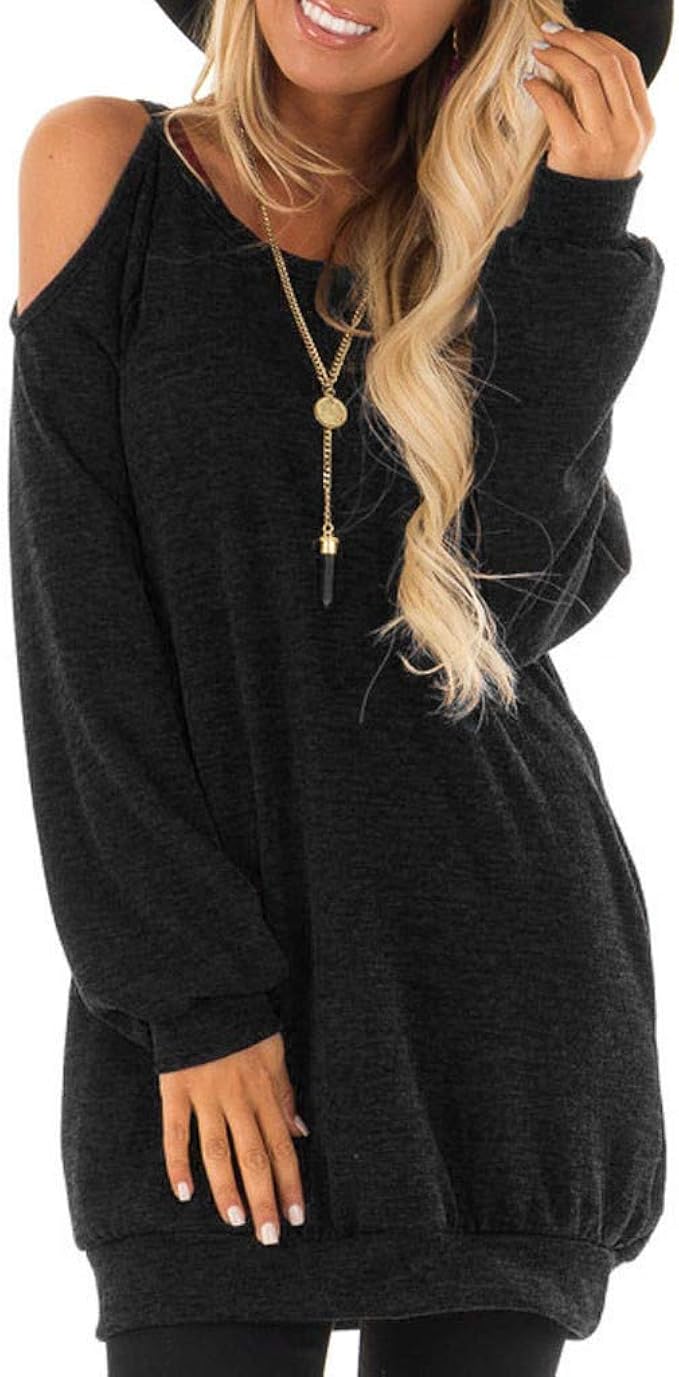 Fannyfuny Damen Oberteil Sexy Schulterfrei Langarm T Shirt Pulli Casual Einfarbig Rundhals Ausschnitt Hemd Sweatshirt Pullover Lose Asymmetrisch Jumper Bluse Elegant Off Shoulder Tops Amazon De Bekleidung