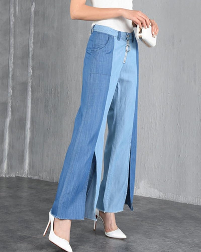 Modische Jeans Schlaghose Polyester Mit Schlitz An Der Front Im Schicken Modischen Style Fur Aerobic Dunn Milanoo Com