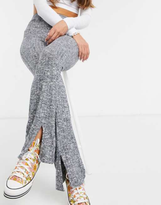 Gerippte Umstands Schlaghose Mit Schlitz Am Saum In Grau Missguided