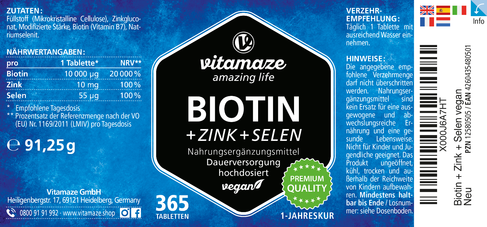 Vitamaze Biotin Hochdosiert Zink Selen 365 Vegane Tabletten Gunstig Kaufen Ebay