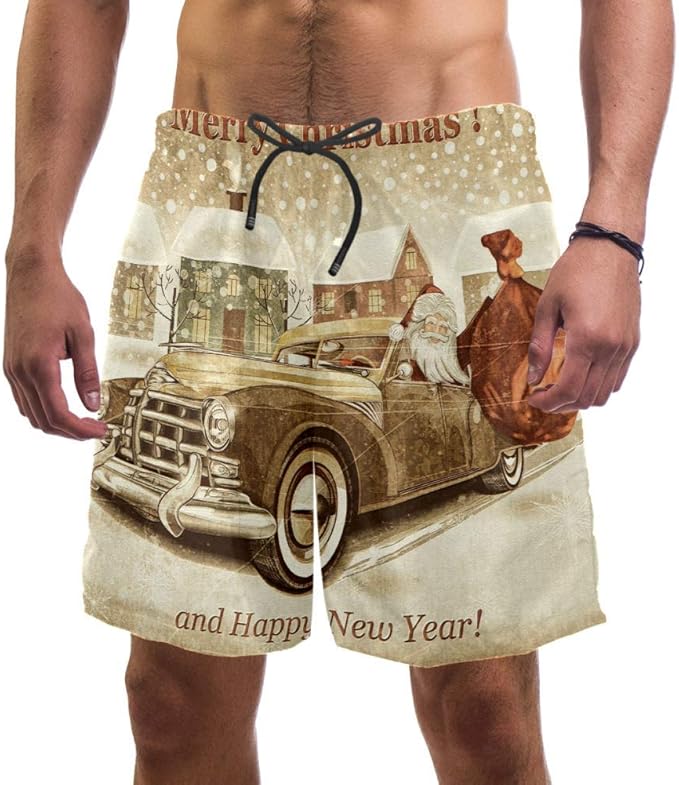 Lorvies Herren Badehose Vintage Look Weihnachtsmann Im Auto Strand Boardshorts Schnell Trocknend Grosse L Gr Xl Multi Amazon De Bekleidung