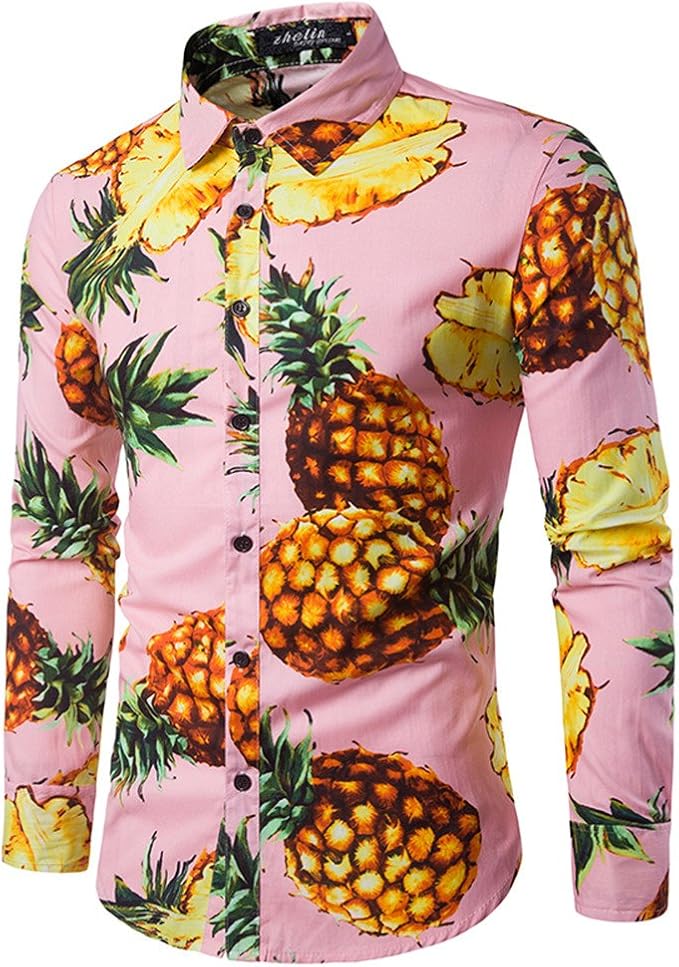 Haroty Herren Hemd Slim Fit Manner Personlichkeit Print Strand Style Freizeit Bugelleicht Langarmhemd Mode Shirt Xxl Rosa Amazon De Bekleidung