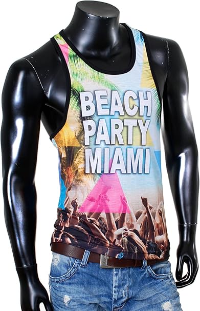 Rerock Herren Beach Tanktop Shirt Ohne Arm Strand Party Spring Break Miami Look Printshirt Armellos Tiefer Breiter Rundhals Ausschnitt 1044 Grosse S Farbe Mehrfarbig Amazon De Bekleidung
