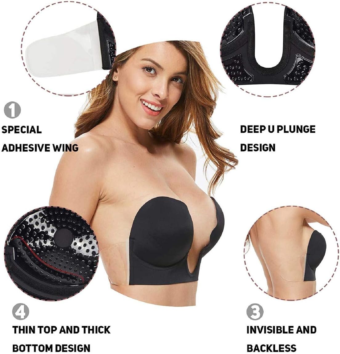 Tuopuda Bh Silikon U Plunge Sticky Wiederverwendbar Unsichtbarer Bh Selbstklebend Tragerloser Bh Ruckenfrei