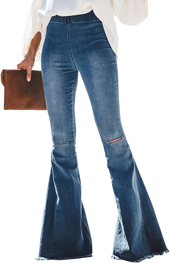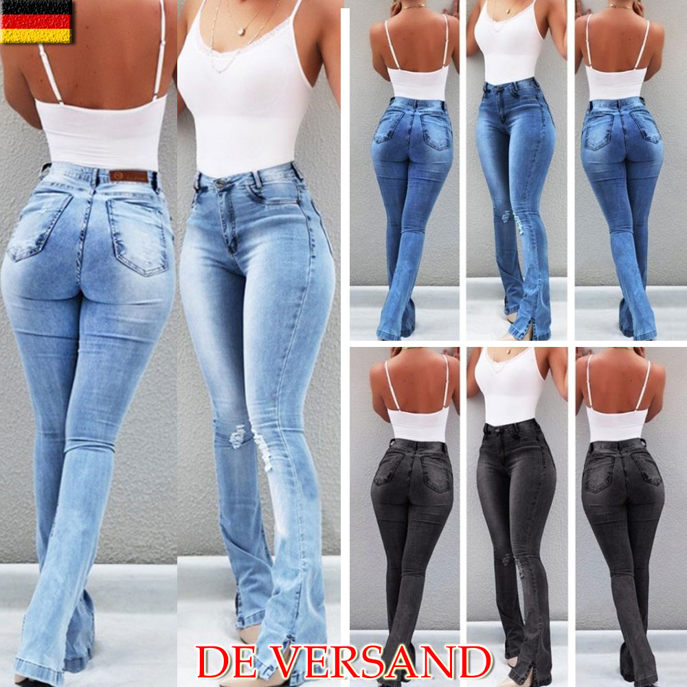 Damenmode Damen Hoch Taille Bootcut Skinny Jeanshose Schlaghose Stretch Denim Weites Bein Curbe Com Ec