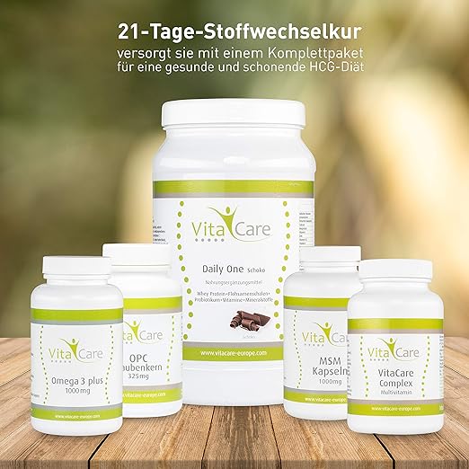 Vitacare 21 e Stoffwechselkur Hcg Diat Komplettpaket Mit Anleitung Msm Kapseln Multivitamin Complex Omega 3 Plus Opc Traubenkern Amazon De Drogerie Korperpflege