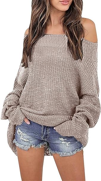 Damen Strickjacke Herbst Winter Strick Pullover Tops Grosse Grossen Cute Schulterfrei Langarm Elegant Fur Mollige Pulli Knit Sweater Festlich Lose Madchen Mode Junger Casual Einfarbig Grundiert Amazon De Bekleidung