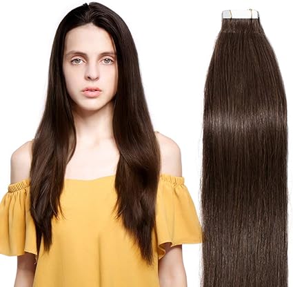 16 22 100 Remy Hair Real Natural Tape In Human Hair Extensions 7a Skin Weft Straight pcs 50g 16 Inch 50g 04 Medium Brown Amazon Co Uk Beauty