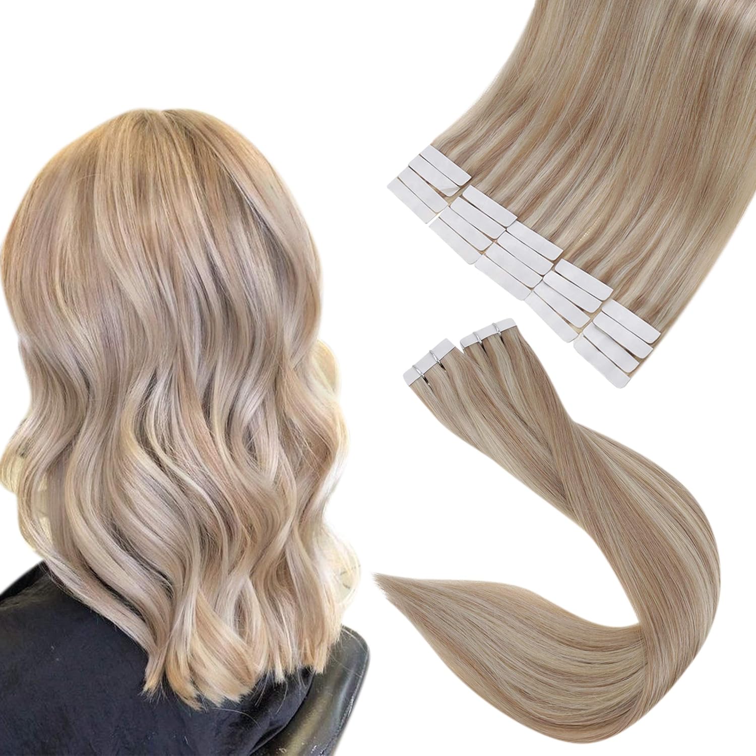 Either way this video will show you how my tape ins work and how I apply them!. Fshine Tape Hair Extensions Real Human Hair 14 Inch Blonde Highlighted Human Tape In Hair Extensions Color 18 Ash Blonde Highlight 22 Blonde Glue On Remy Hair Extensions Pcs 50 Grams 43 out of 5 stars 352 $39 $ 38 99 ($195/Count) 7% coupon applied at checkout Save 7% with coupon. We use the finest hair which never tangles, dries out or thins on the ends We recommend wearing tape extensions for 6 weeks if you have finer hair or 8 weeks if you have thicker hair before being refitted.