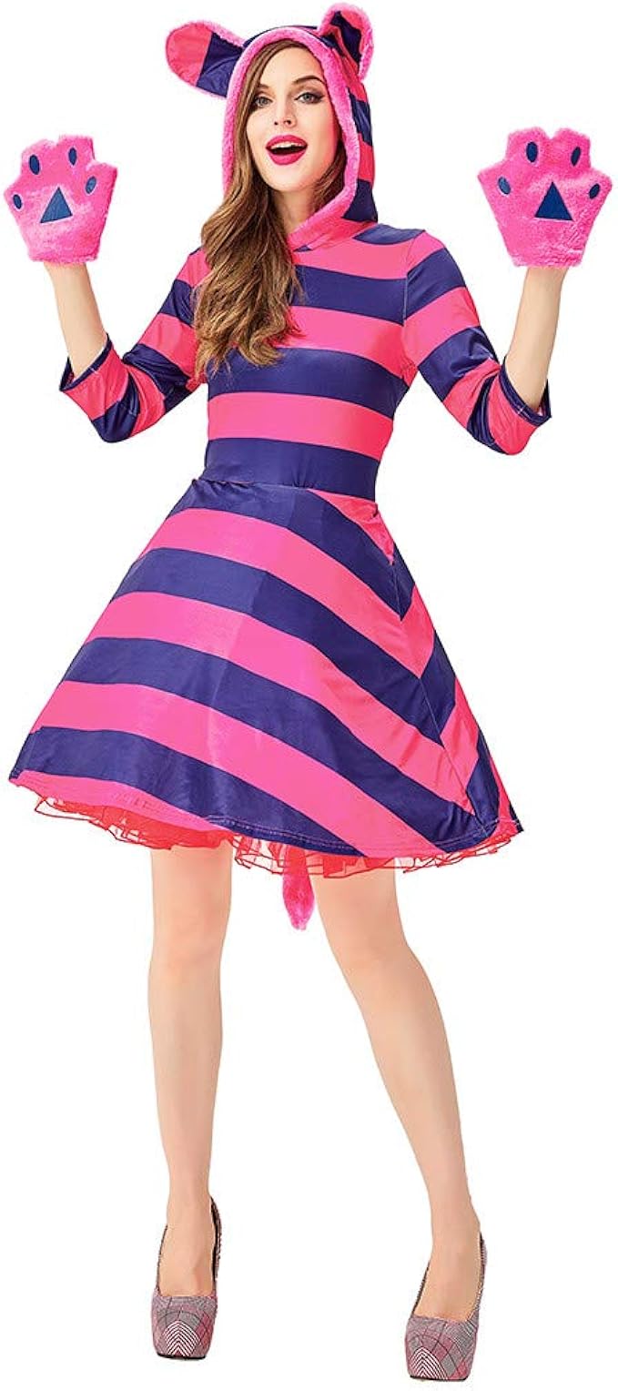 Transwen Weihnachtsfeier Cosplay Kleidung Damen Cat Maid Weihnachten Halloween Kostum Frauen Streifen Festliches Kleid Mit Ohr Kapuzen Plusch Handschuhe Lila Minikleid Partykleid Mit Schwanz Amazon De Bekleidung