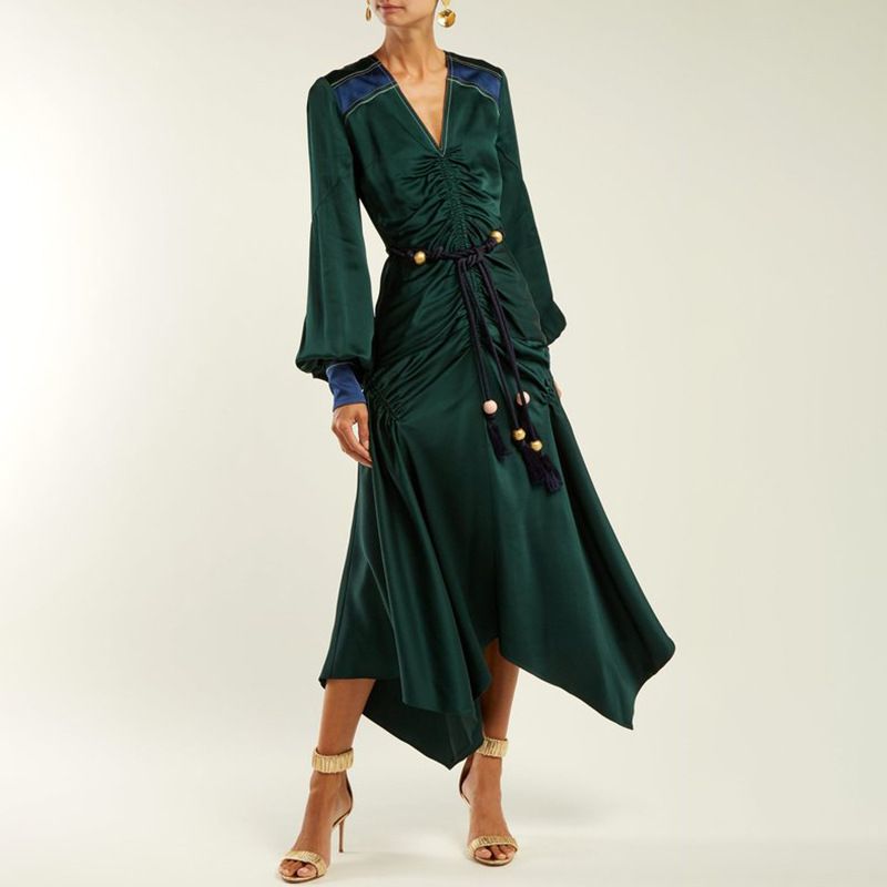 Grosshandel 18 Winter Sexy V Ausschnitt Grun Frauen Langes Kleid Runway Designer Ruschen Lace Up Damen Weihnachtsfeier Unregelmassige Kleider Kleidung Von Burtom 38 86 Auf De Dhgate Com Dhgate