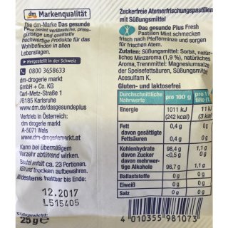 Das Gesunde Plus Fresh Pastillen Mint Zuckerfrei 25 G