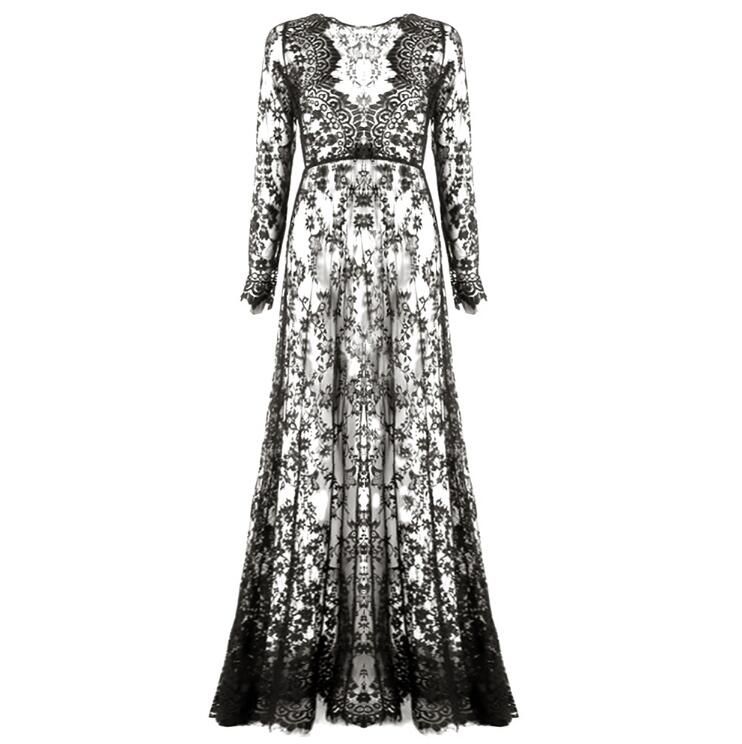 Grosshandel Sommer Europaischen Stil Womens Sexy Spitze Stickerei Maxi Festes Weisses Kleid Lange Armel Tiefem V Ausschnitt Vestidos Plus Grosse S 4xl Von Haoyunlai17 6 71 Auf De Dhgate Com Dhgate