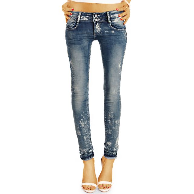 Be Styled Design Jeanshose Huftjeans Damen Mit Weissen Farbflecken Rohriger Skinny Slim Schnitt J25r