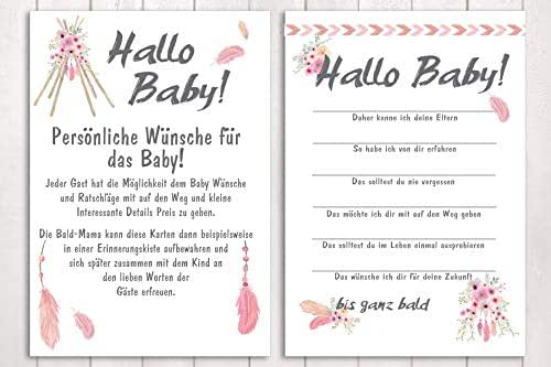 10 Karten Hallo Baby Babyparty Spiel Boho Amazon De Handmade