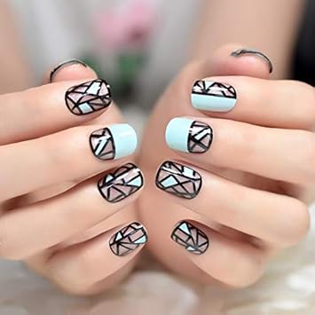 Plzjmm Kunstliche Nagel Matte Weisse Linie Lange Nagel Schwarzes Quadrat Verflochten Gefalschte Nagel Matte Charme Kunstliche Nagelspitzen Amazon De Beauty
