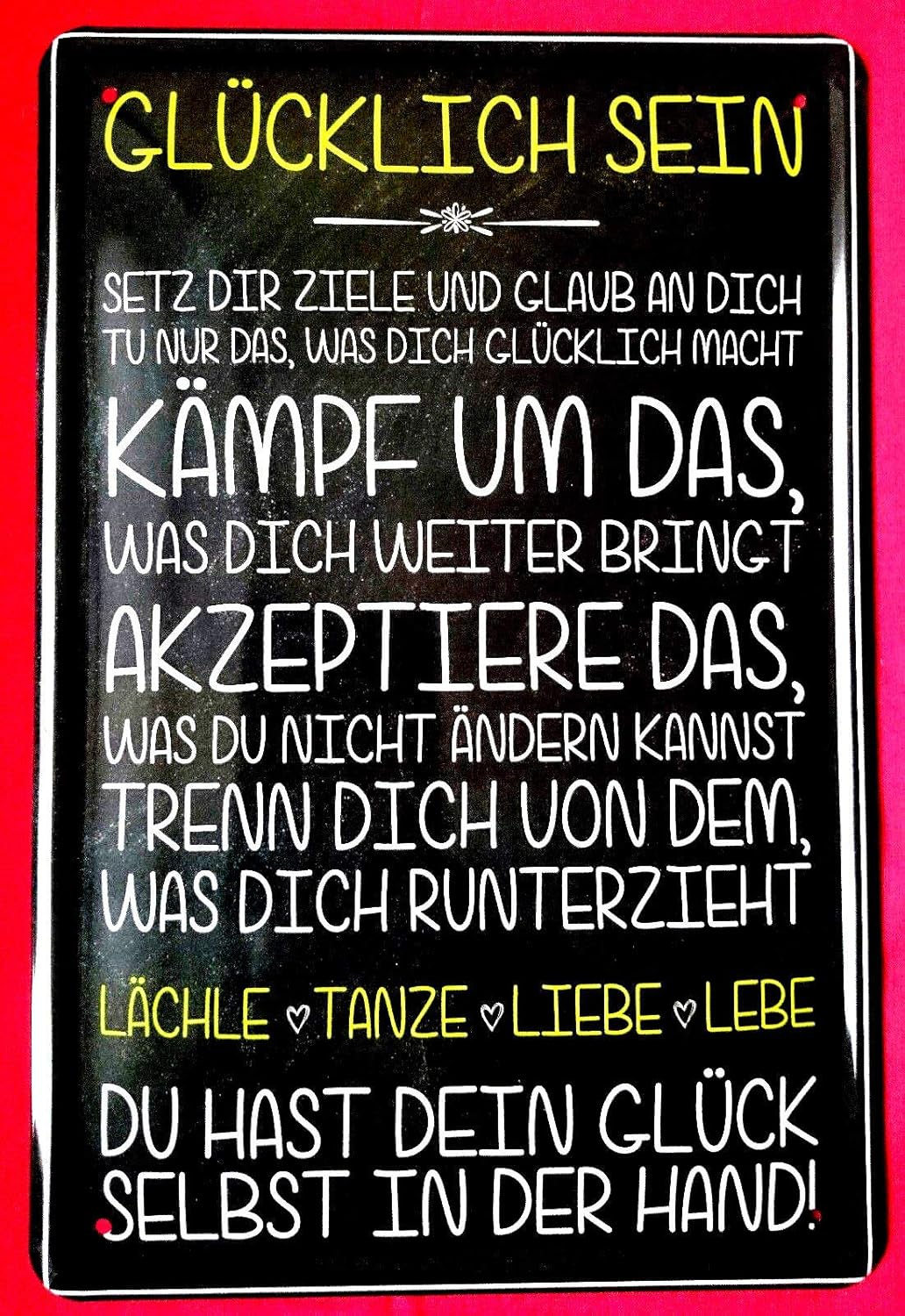 Blechschild x30 Cm Anleitung Zum Glucklich Sein Lachle Tanze Liebe Lebe Weisheit Spruch Bar Kneipe Haus Garten Buro Metall Schild Amazon De Kuche Haushalt