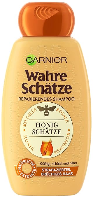 Garnier Wahre Schatze Honig Schatze Shampoo Haarshampoo Mit Propolis Und Gelee Royal Fur Strapazierte Haare 250ml Amazon De Beauty