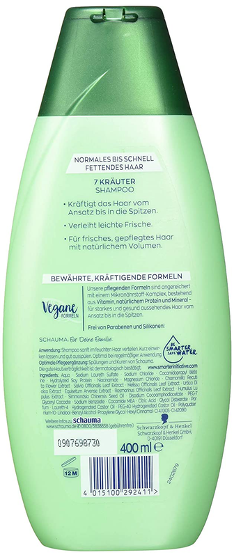 Ähnliches & Alternativen Stimmt es, dass Kakao gegen fettiges Haar hilft?. Schauma 7 Herbs Shampoo 845 fl oz 40 out of 5 stars 1 $700 Schauma Keratin Strong Shampoo 135 fl oz 50 out of 5 stars 4 $923 Es reinigt das Haar für bis zu 48h Frische, ist sanft zur Kopfhaut und für die tägliche Haarwäsche geeignet Ohne Silikone milde Pflege ohne zu beschweren. Hi Ich hab also schnell fettiges Haar Die Kopfhaut fettet schon ein paar Stunden nach der Haarwäsche wieder Das Mint Fresh Shampoo von Schauma hab ich schon ausprobiert jedoch hat mir das nicht besonders gut gefallenHallo joker42, da du direkt nac.