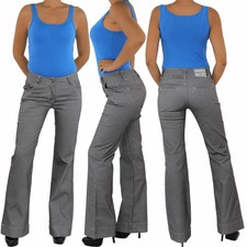 Damen Schlaghose Stretch Hufthose Bootcut Schlag Huft Stoff Hose Grau Silber Ebay