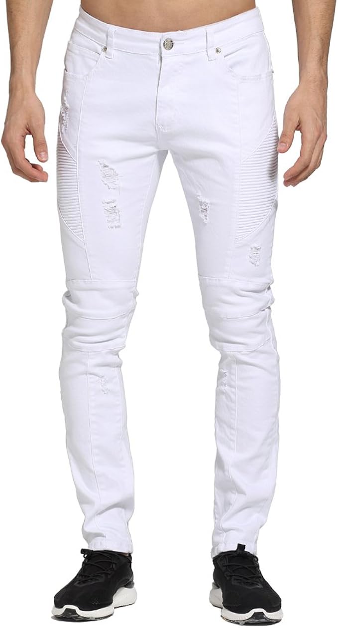 Craodieya Mode Weisse Manner Jeans Design Zerrissen Skinny Biker Jeans Fur Manner E 1703 Amazon De Bekleidung