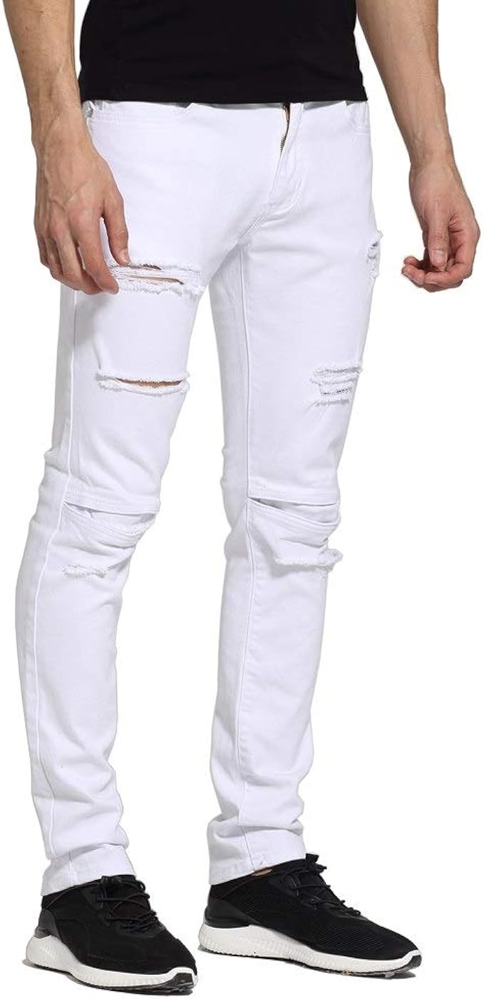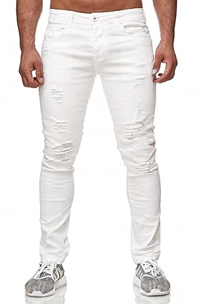 Megastyl Herren Hose Ripped Jeans Weiss Slim Fit Stretch Denim Ebay