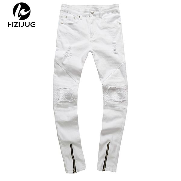 Grosshandel Hzijue Manner Reissverschluss Designer Weisse Jeans Manner Pantalones Vaqueros Hombre Casual Herren Jeans Hip Hop