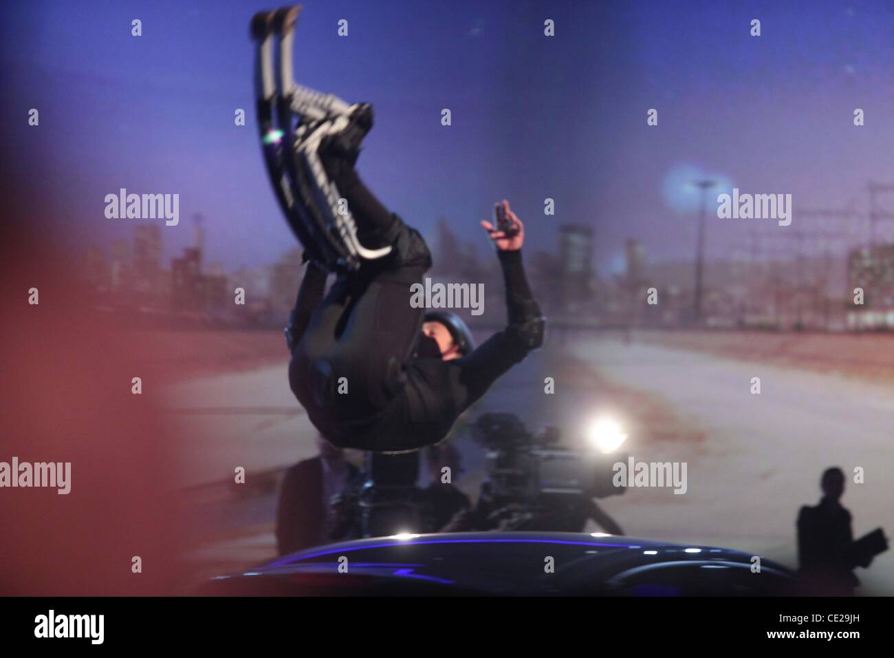 Samuel Koch Jumps Over An Audi Car During A Stunt On German Zdf Tv Stock Photo Alamy