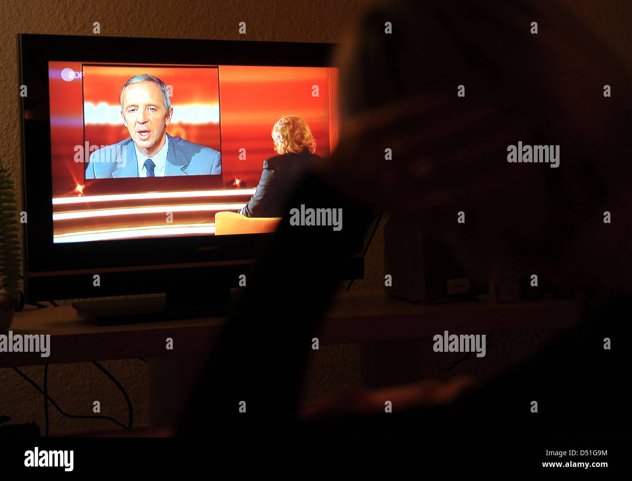 A Woman Watches The Tv Show People 10 On German Tv Channel Zdf In Stock Photo Alamy