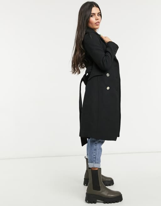 Forever New Petite Belted Wool Trench Coat In Black Asos