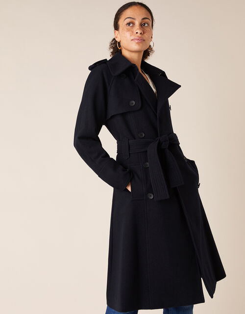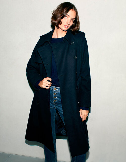 Double Breasted Trench Coat In Wool Blend Blue Coats Monsoon Uk