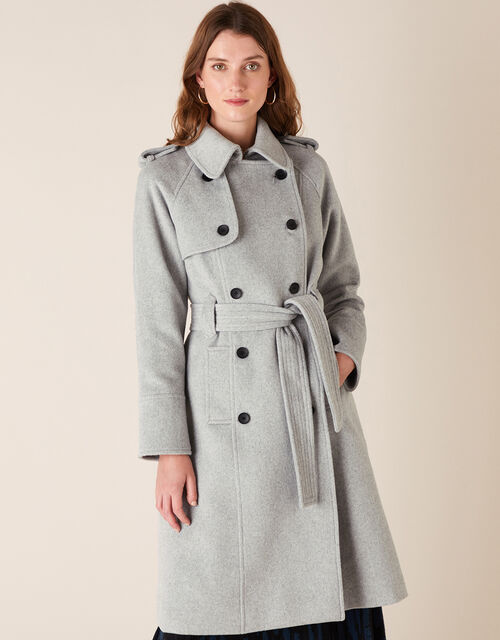 Buy Monsoon Grey Wool Blend Trench Coat From The Next Uk Online Shop