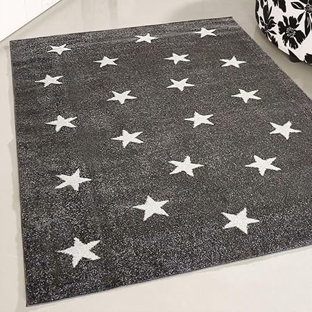 Amazon De Mynes Home Teppich Kurzflor Grau Stern Designer Modern Jugendzimmer Kinderzimmer 0 X