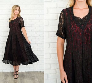 Vintage 90s Schwarze Spitze Grunge Kleid Durchsichtig Armel M Midi Ebay