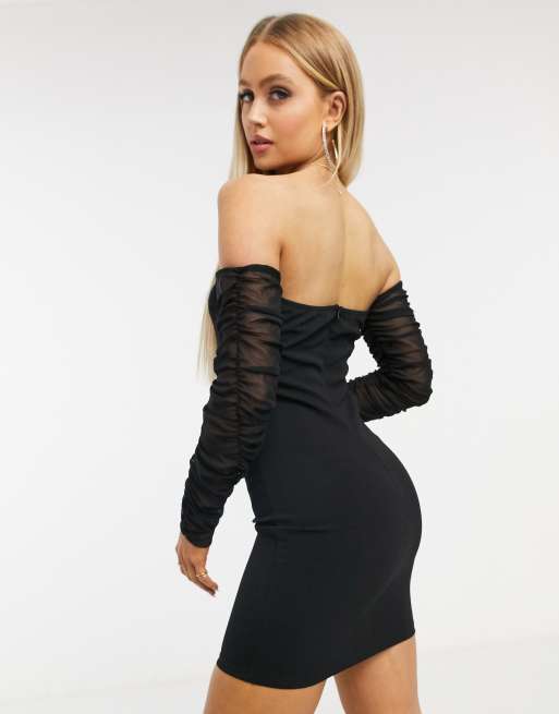 Saint Genies Schwarzes Kleid Mit Carmen Ausschnitt Und Transparenten Armeln Asos