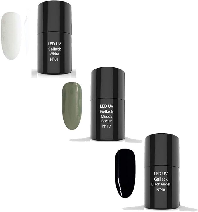 Led Uv Nail Polish Gel Set 10 1x N 01 White 6ml 1x N 17 Muddy Biscuit 6ml 1x N 46 Black Angel 6ml Uv Nail Polish Uv Varnish Gellack Uv Gel Lacquer Amazon Co Uk Beauty