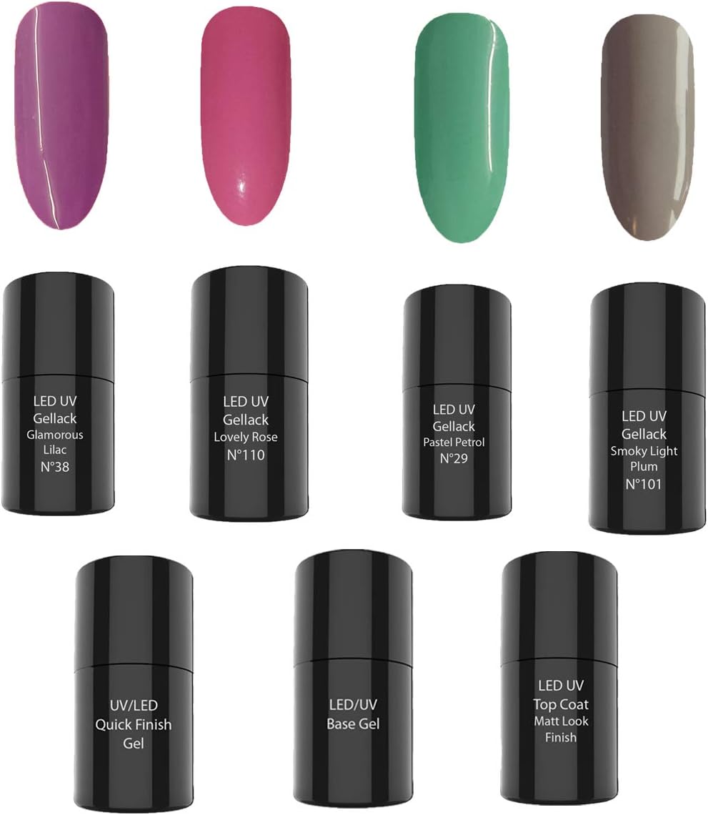 Matt Shine Uv Nail Polish Set No 4 Uv Nail Polish 4x A 6ml 1x Base Gel 1x Quick Finish 1x Uv Matt Look Finish Amazon Co Uk Beauty