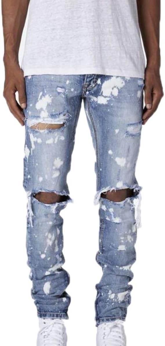 Keepmore Herren Zerrissene Loch Jeans Mode Stil Paint Splat Washed Mill Weisse Jeans Amazon De Bekleidung