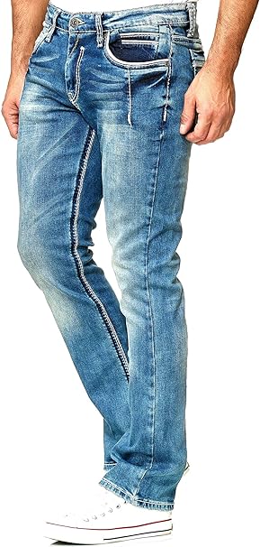 Rusty Neal Jeanshose Herren Dicke Naht Weisse Ziernaht Blue Jeans Regular Fit Stretch 29 Amazon De Bekleidung