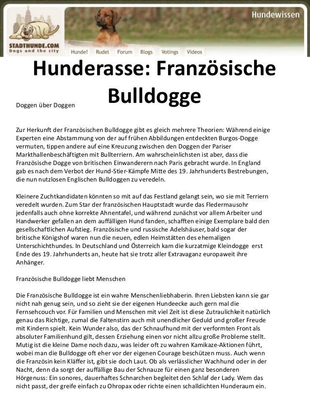 Steckbrief Name Französische Bulldogge Alternative Namen Bouledogue français Ursprüngliche Herkunft Frankreich FCI Gruppe Gesellschafts und Begleithunde Größe () bis zu 35cm Größe () bis zu 35cm Gewicht () 8 14kg. Die Französische Bulldogge ist ein typischer Familienhund Sie ist auch ein toller Begleiter für Singles, Alleinstehende und ältere Menschen Sie hat ein sehr fröhliches Wesen und lässt sich nicht schnell aus der Ruhe bringen In ernsten Situationen kann es ihren ausgeprägten Wach und Schutzsinn spüren lassen wird aber nicht unbedingt. Gestromt, ungestromt oder mit begrenzter Scheckung Wesen freundlich, verspielt, geduldig, verschmust, treu Der ideale Familienhund Mit ihrem fröhlichen Charakter ist die Französische Bulldogge der ideale FamilienhundDa sie sich nicht so schnell aus.