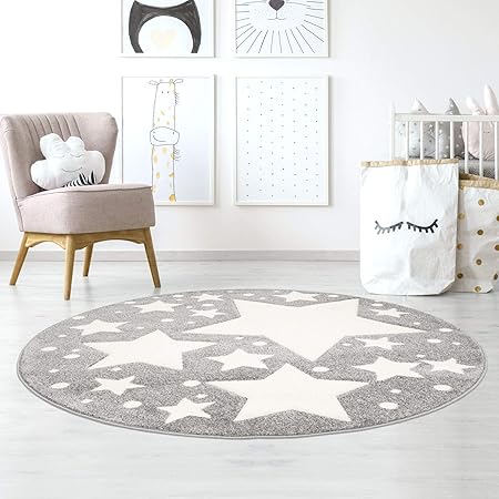 Taracarpet Kinderzimmer Und Jugendzimmer Teppich Dreamland Kinderzimmerteppich Sterne Grau Blau 150x150 Cm Rund Amazon De Kuche Haushalt